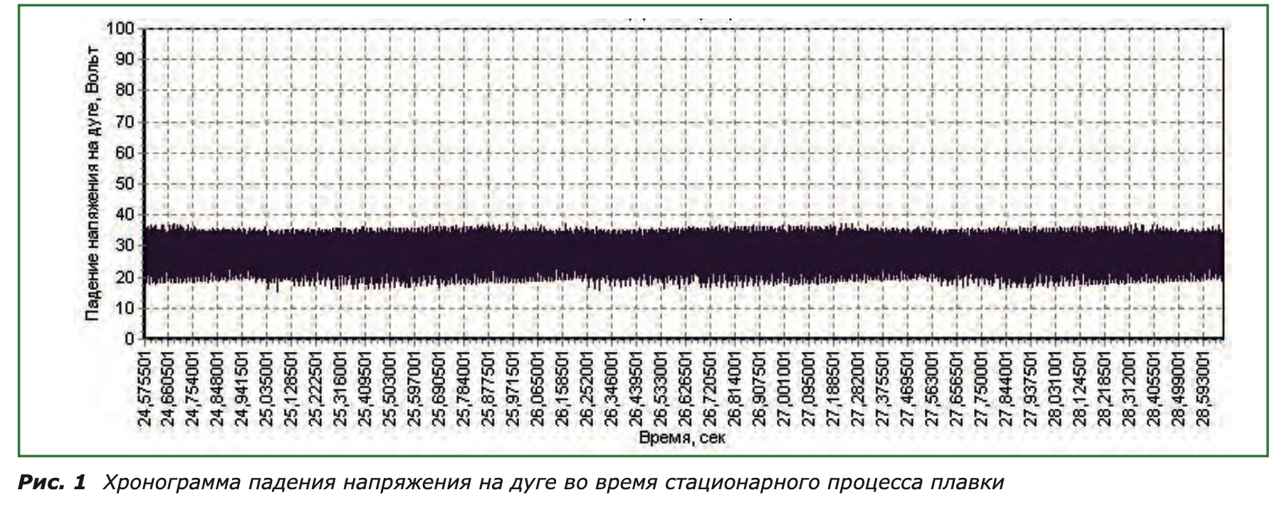 В связи с этим возникла необходимость высокоскоростной записи параметра падения напряжения и его анализа на предмет появления «нитридов» для дальнейшей более качественной обработки. Непосредственно в процессе плавки анализировать данные невозможно, так как даже для современных ПЛК это довольно сложная вычислительная задача. Для решения этой задачи предлагается использовать ПО «Модуль обработки и анализа данных», который записывает и обрабатывает сигнал с высокой частотой дискретизации 1–20 кГц на всем протяжении процесса плавления.
