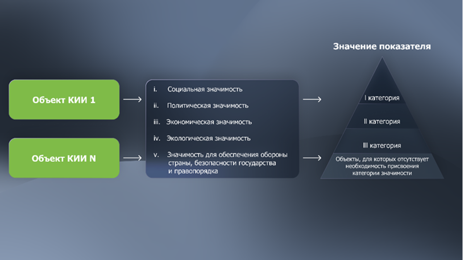 Объекты могут быть значимыми и нет: у каждого из первых есть категория значимости. 1 — самая значимая, 3 — наоборот. Оценка ставится в зависимости от степени возможного вреда при несанкционированном доступе к объекту критической информационной инфраструктуры.